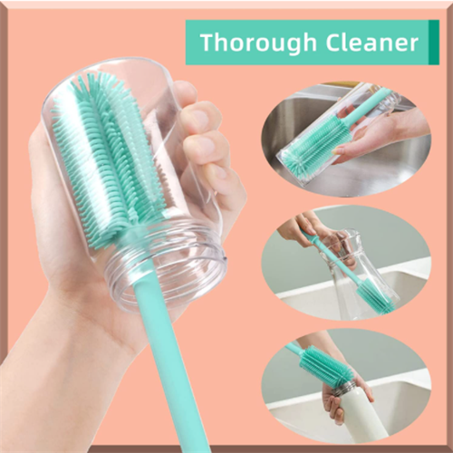 Designed with bristles of different shapes and lengths, the silicone bottle cleaning brush is versatile enough to clean bottles of all sizes. Whether it's a narrow-necked or wide-mouthed bottle, this brush ensures thorough cleaning even in hard-to-reach areas.